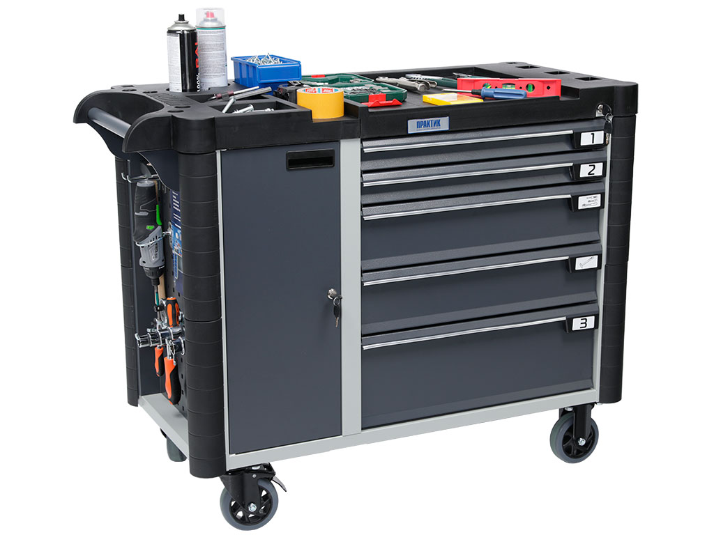 - Топ (пластик черного цвета) оснащён ложементами под инструменты для организации, хранения и удобства использования во время выполнения работ. Нагрузка на ТОП – 40 кг