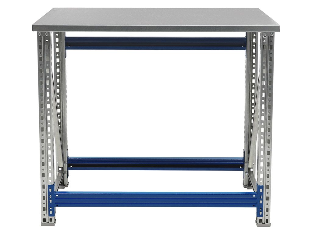 - Основные элементы верстака (опоры, полка, накладка на столешницу) изготовлены из оцинкованной стали, что позволяет устанавливать его в местах с повышенной влажностью.