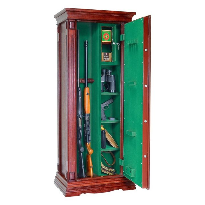 Сейф ОШ-335 является элитным оружейным сейфом с ключевым замком, предусмотрен для хранения огнестрельного оружия. Покрытие из натурального дерева. Максимальная высота ствола 1380 мм.