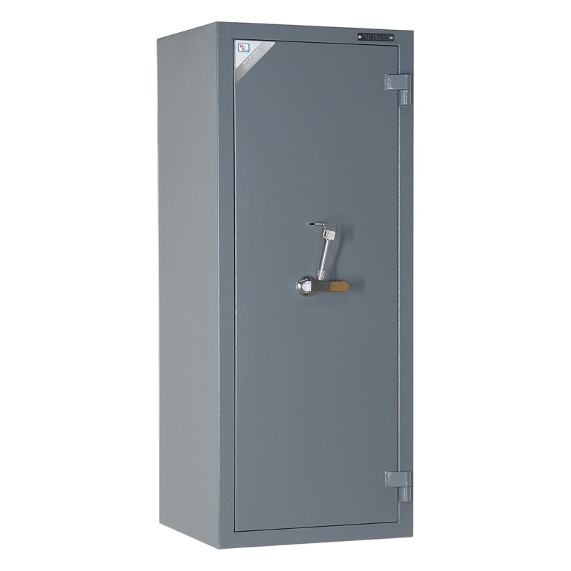 Сейф односекционный СМ(3)-120 предназначен для хранения бумажных документов и ценностей на сумму до 3 млн. руб. для физических лиц и до 800 тыс. руб. для юридических лиц. Сейф сертифицирован по ГОСТ Р 50862-2017 (п.4.1, табл.1), ГОСТ Р 51113-97 (разд. 4.1). Класс устойчивости к взлому-III (третий). Сейф односекционный, оснащен двумя съемными полками. В двери установлен ключевой замок BORDER класс А. Для облегчения процесса открытия шкафа дверь оборудована поворотной ручкой.