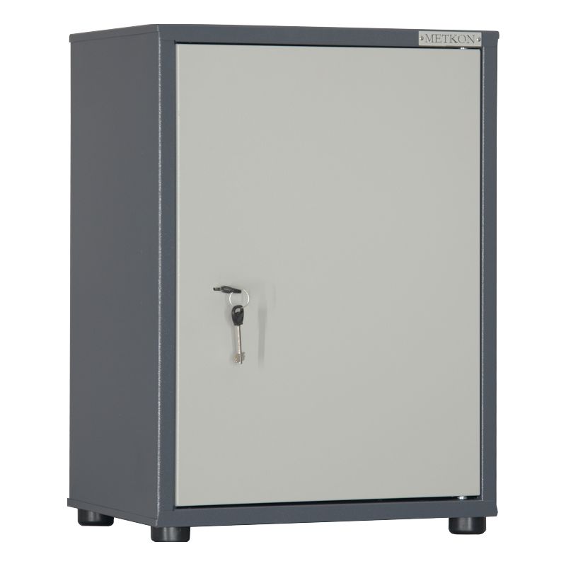 Шкаф односекционный, оснащен съемной полкой и трейзером. В двери установлен ключевой сувальдный замок.