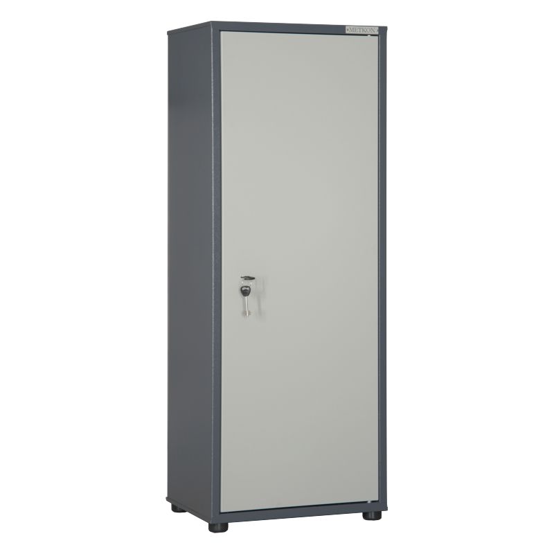 Шкаф односекционный, оснащен 2-мя съемными полками и трейзером. В двери установлен ключевой сувальдный замок.