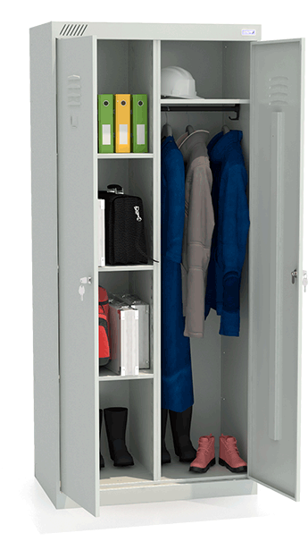 Металлический шкаф серии ШМ-У универсален, так как имеет отделение для сменной одежды и архивно-хозяйственное отделение для хранения различного инвентаря, документов и т.д.