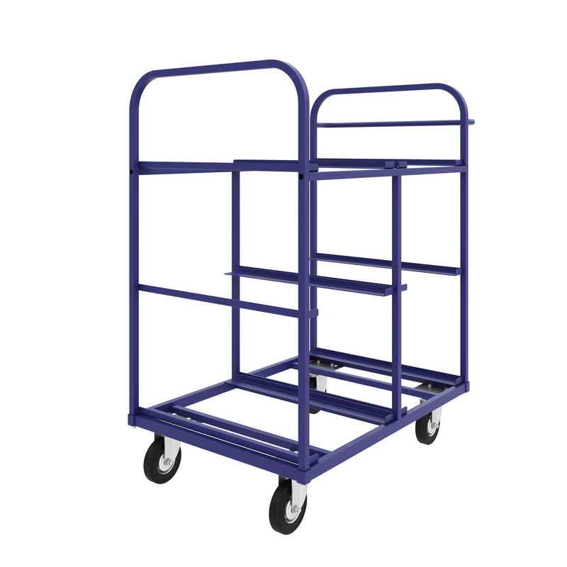 Трехъярусная платформенная тележка для перевозки пластиковых ящиков габаритами 600×400×300 мм. Предназначена для складирования и транспортировки ящиков. Основное применение данной модели — комплектование индивидуальных сборных заказов. Тележка обеспечивает удобное и безопасное перемещение пустых и затаренных ящиков в пункт назначения.